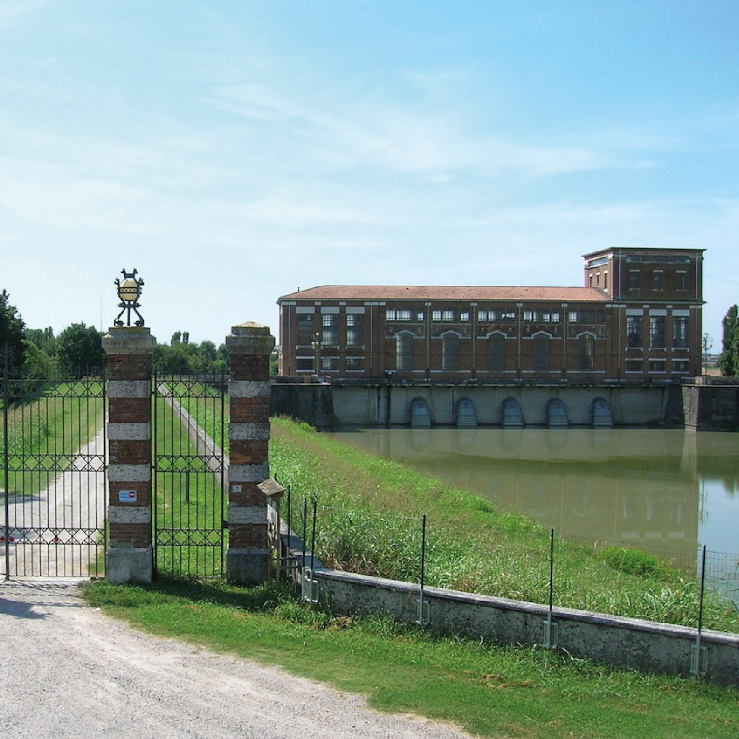 L’impianto idrovoro delle Mondine costruito dal 1922 al 1926 nell’ambito della Bonificazione Parmigiana-Moglia ha la funzione di riversare nel Secchia le acque dei territori delle province di Reggio Emilia e Modena che si trovano al di sopra della quota di 25 m sul livello del mare. Le caratteristiche formali e impiantistiche sono simili al più grande stabilimento idrovoro di San Siro (1919-1926), costruito dallo stesso Consorzio nel comune di San Benedetto Po.
