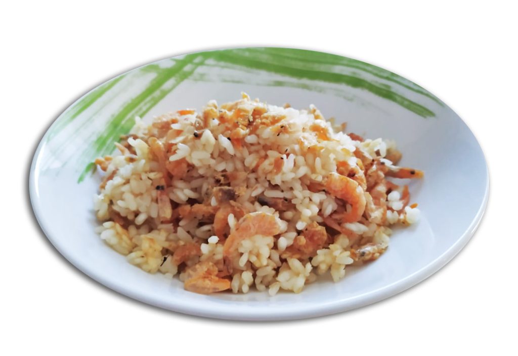 Saltarei (gamberetti di fiume), uno spicchio d’aglio, riso Vialone Nano, un ciuffo di prezzemolo, olio di semi. Prendere i saltarei interi, infarinarli e friggerli in olio bollente (in quantità abbondante) in un tegame largo e fondo, fino a raggiungere un colore rosato. Appena fritto il pesce, toglierlo dall’olio e metterlo su carta assorbente. Colare l’olio rimasto e conservarlo per condire il risotto. Per la cottura del riso bisogna portare ad ebollizione l’acqua e salare con sale grosso, versarlo nell’acqua portandolo a cottura per 3-5 minuti a pentola scoperta, poi togliere l’acqua in eccesso. Continuare la cottura a fuoco lento coprendo la pentola con un panno di cotone e sopra un coperchio. Il riso sarà pronto per ricevere il condimento con l’olio tenuto da parte in precedenza, uno spicchio d’aglio tritato e il prezzemolo, aggiungendo infine i saltarei.